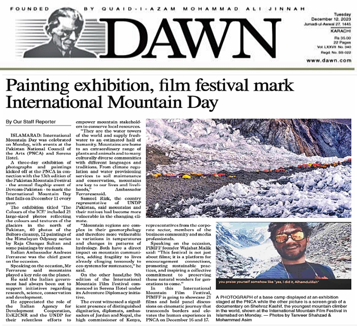 This morning a photo exhibition has been inaugurated at PNCA – Pakistan National College of Arts, arranged by italian organization EvK2 CNR and UNDP Pakistan in the framework of the project “Glaciers & Students“, in partnership with DEVCOM Association and Embassy of Italy in Islamabad. IUCN and ETI – Economic Transformation Initiative provided information desks with brochures and postcards related to development projects funded the Italian Government in pakistani mountain regions.